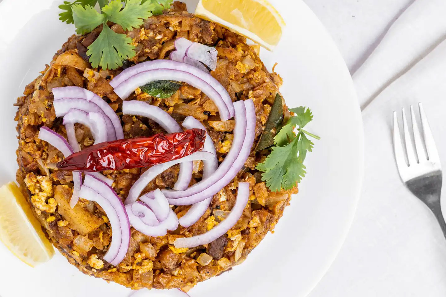 String Hoppers kothu is made the same way as our traditional kothu style. We use daily made puttu mixed with veggies and your choice of meat or seafood.