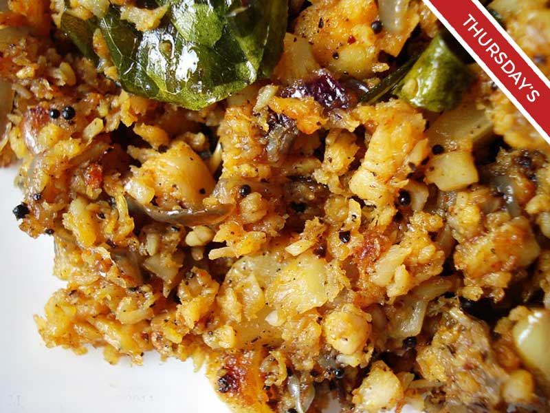 Puttu kothu is made the same way as our traditional kothu style. We use daily made puttu mixed with veggies and your choice of meat or seafood.