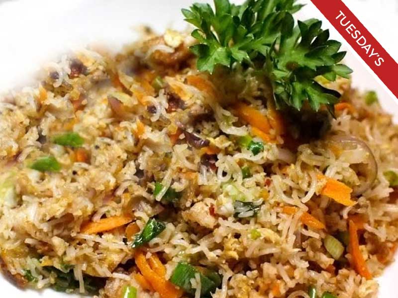 Chef's recommendation dish, a tasty Indian & Chinese fusion style fried rice with a touch of spice and herbs.